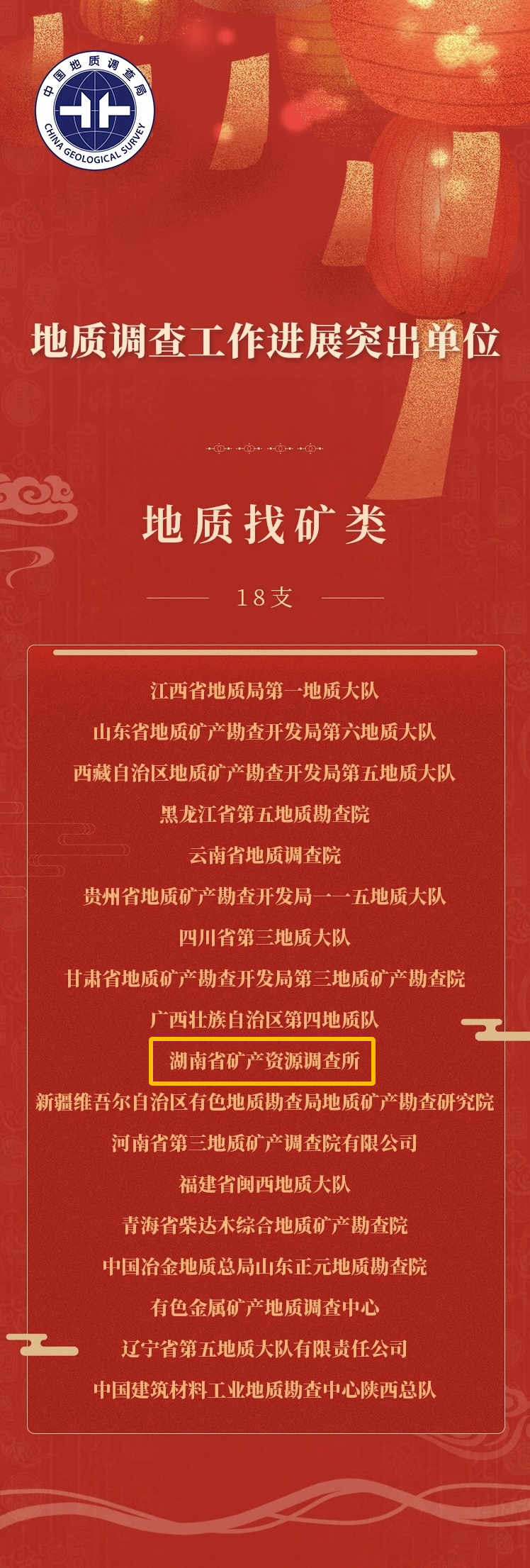 會(huì)議期間還公布了《中國(guó)地質(zhì)調(diào)查局關(guān)于公布2023年度地質(zhì)調(diào)查十大進(jìn)展、地質(zhì)科技十大進(jìn)展的通知》和《中國(guó)地質(zhì)調(diào)查局關(guān)于表揚(yáng)地質(zhì)調(diào)查工作年度進(jìn)展突出單位的通知》,院屬湖南省礦產(chǎn)資源調(diào)查所(地質(zhì)找礦類)、湖南省水文地質(zhì)環(huán)境地質(zhì)調(diào)查監(jiān)測(cè)所(水工環(huán)地質(zhì)類)榮獲2023年度地質(zhì)調(diào)查工作進(jìn)展突出單位。