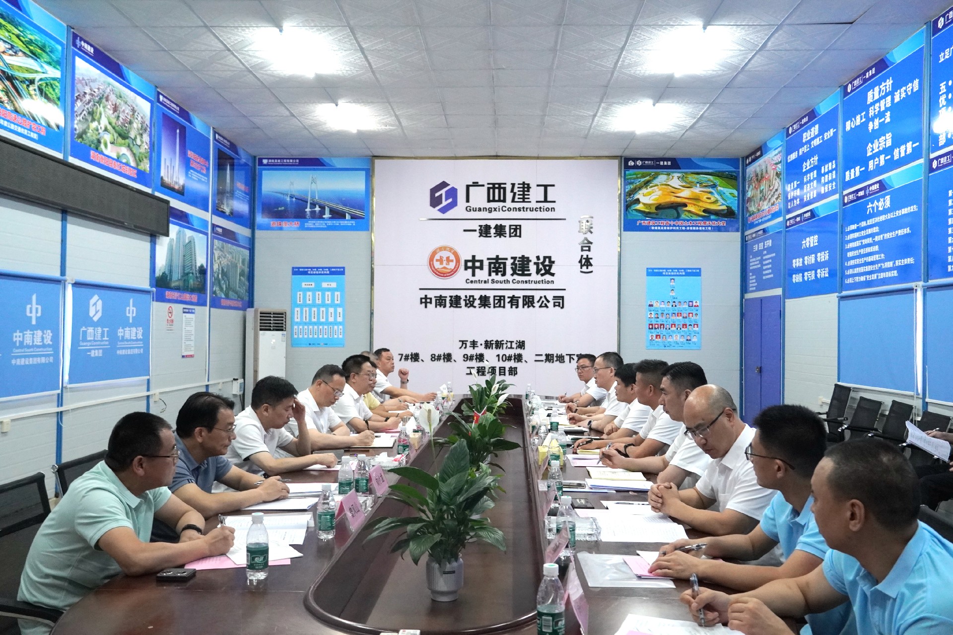 談文勝一行先后來到項目建設工地、職工食堂、職工宿舍、黨建活動室等地,認真查看并詳細了解了項目施工進度、基層黨建、安全生產(chǎn)、技術(shù)應用、職工生活住宿等情況,現(xiàn)場提出安全生產(chǎn)隱患整改意見。隨后組織召開了項目座談會,聽取項目各項重點工作情況匯報,研究部署下階段工作任務。集團公司黨委書記、董事長申志剛代表項目部做工作情況匯報,廣西建工一建集團第六分公司總經(jīng)理高長亮,湖南基礎公司總經(jīng)理凌剛作了補充情況說明。與會人員圍繞項目管理、安全生產(chǎn)、科技創(chuàng)新等內(nèi)容開展座談交流。