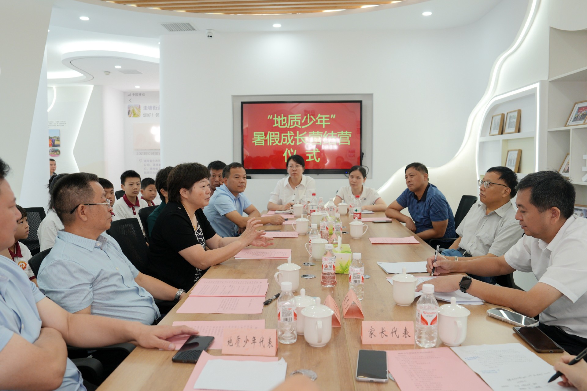 座談交流環(huán)節(jié),吳兵良介紹了暑假成長營的開展情況,對少年們的成長與收獲給予肯定。地質(zhì)少年代表易瑾浩發(fā)言,分享了自己的所見所聞、所學(xué)所感,言語中流露出對地質(zhì)事業(yè)的敬畏與向往。兩位家長代表蘇媛、曹暉分別發(fā)言,表達了對孩子成長的欣慰以及對多方組織的感謝之情。